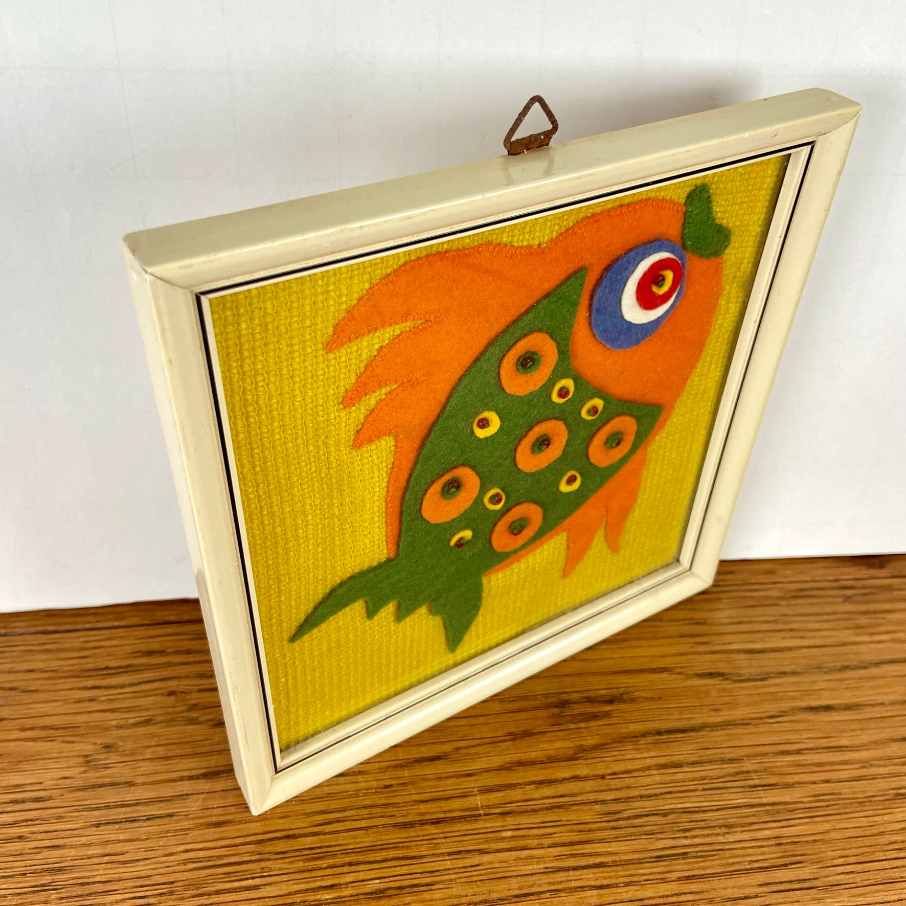 - Prachtig vintage schilderijtje van een vis, gemaakt van kleurrijke stukjes vilt.