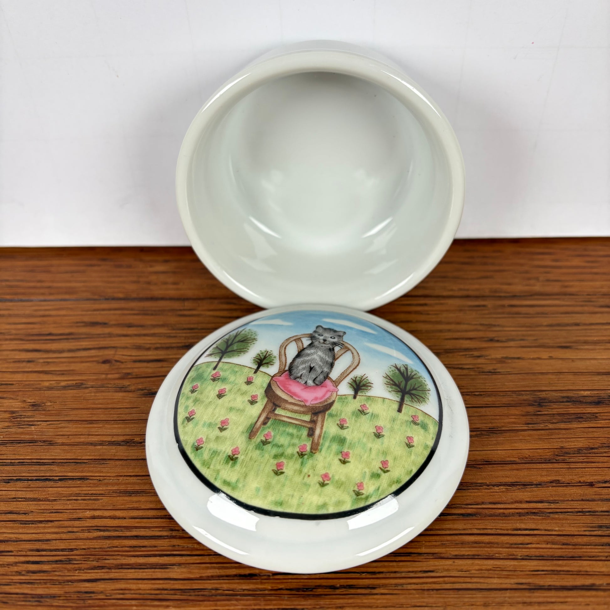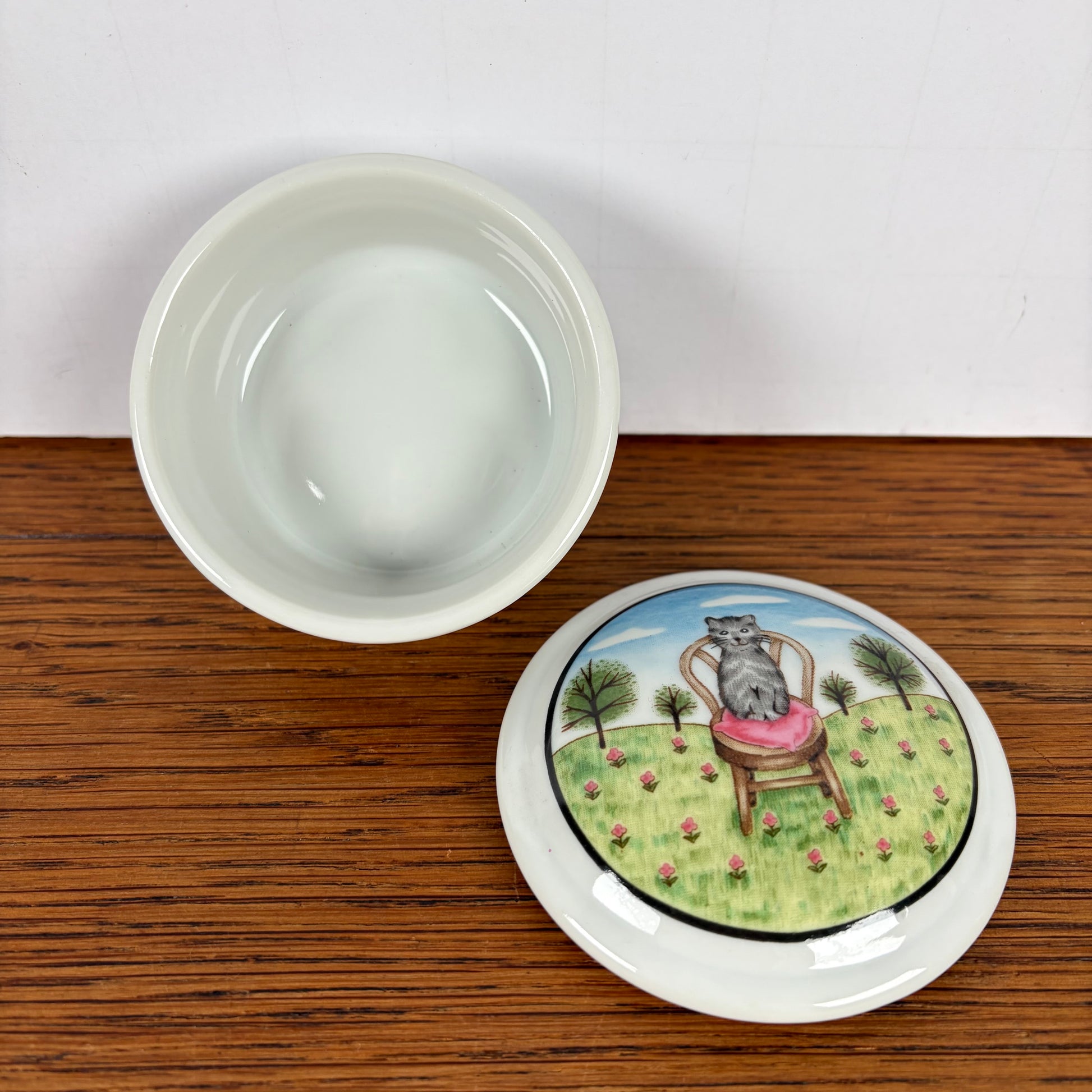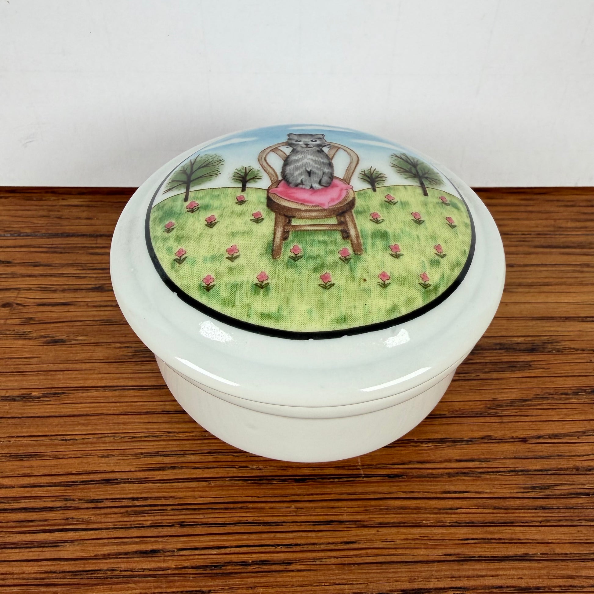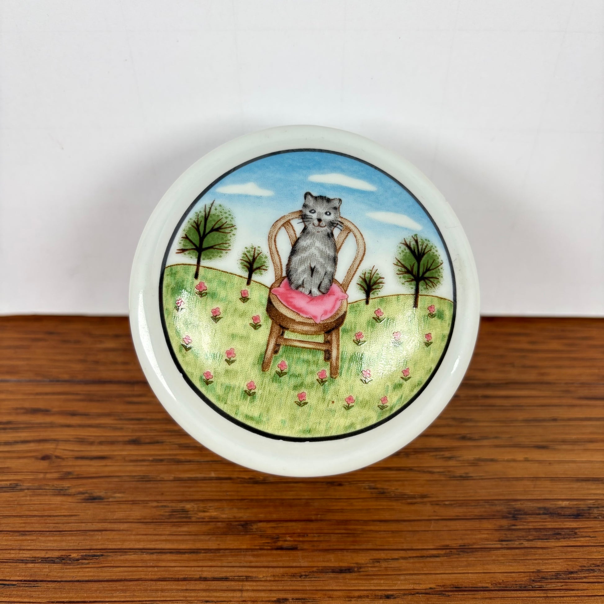 - Wat een leuk keramieken snuisterijen doosje met een kat op een stoel