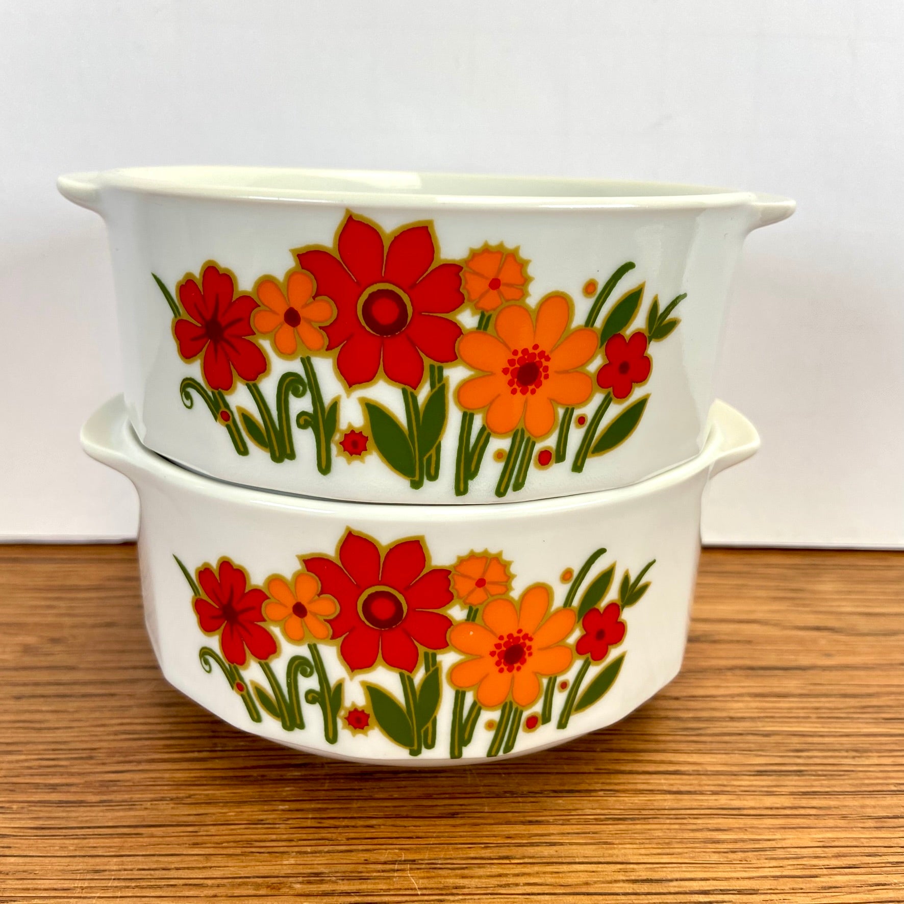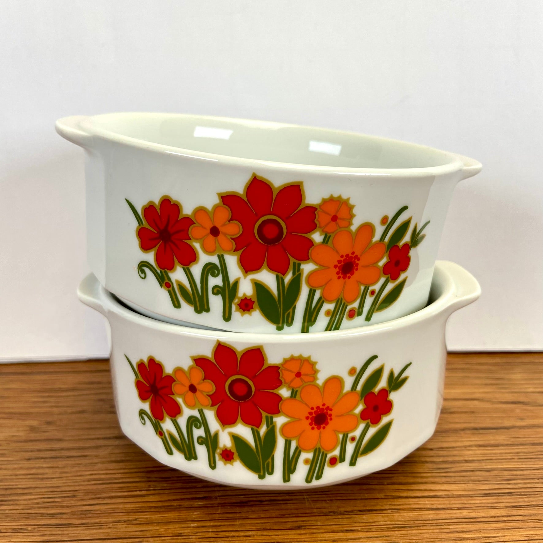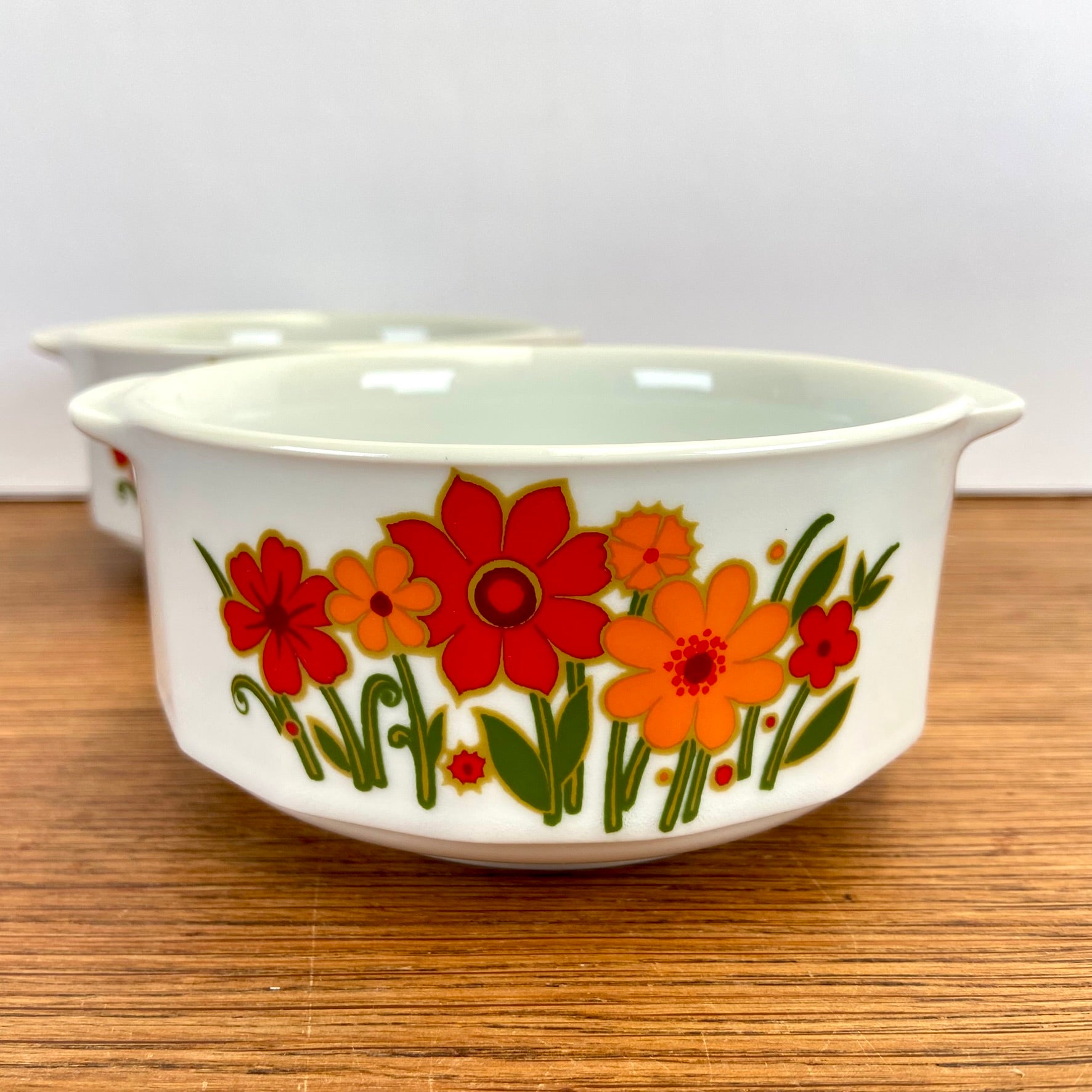 - Toffe set va 2 vintage soepkommen met kleurrijke bloemen.