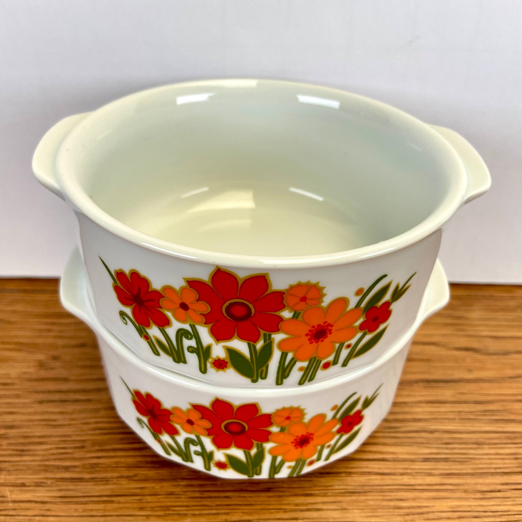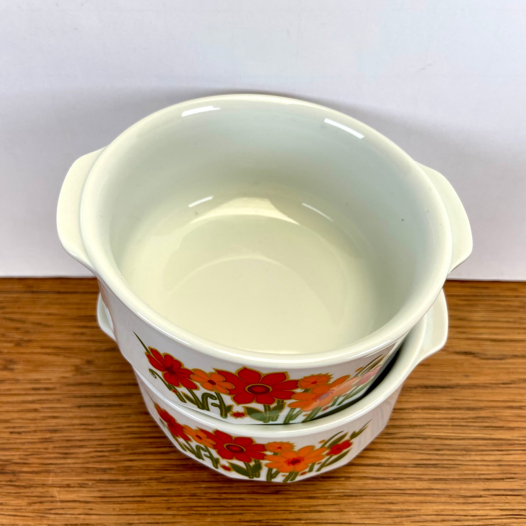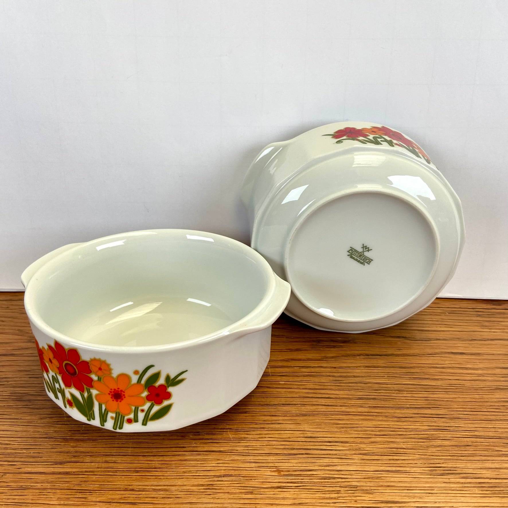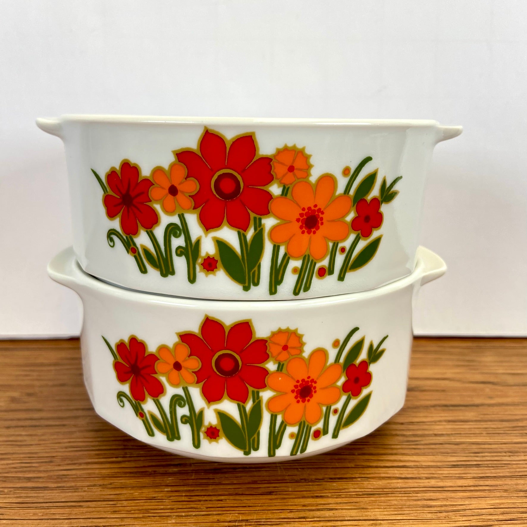 - Toffe set va 2 vintage soepkommen met kleurrijke bloemen.