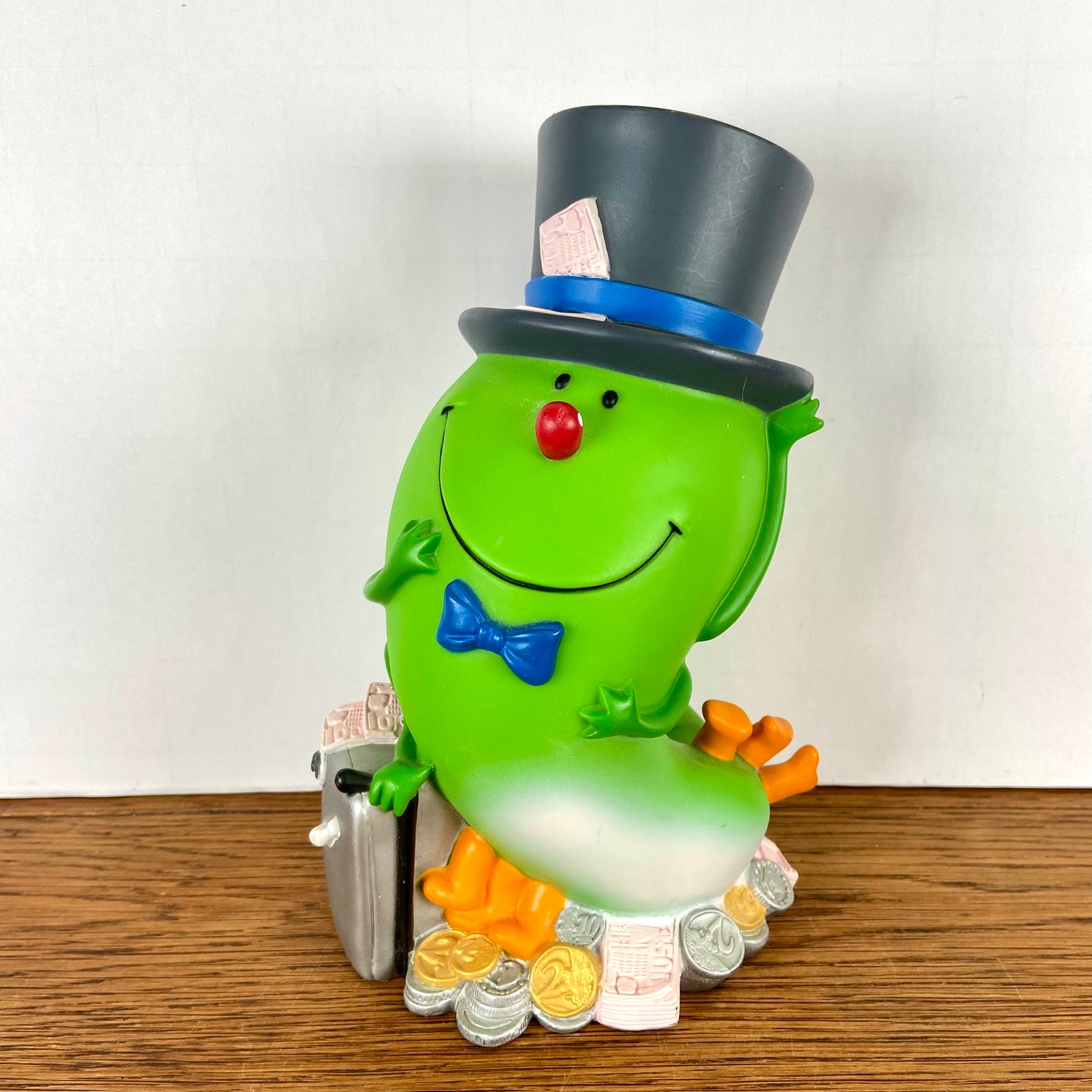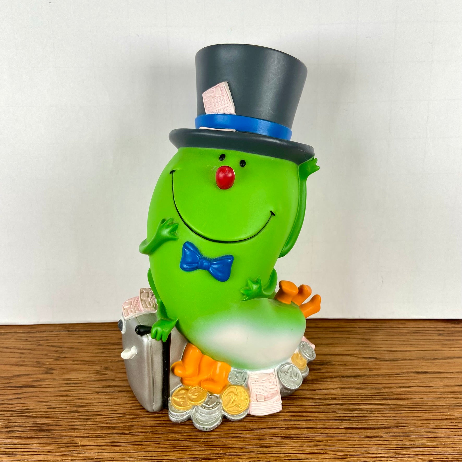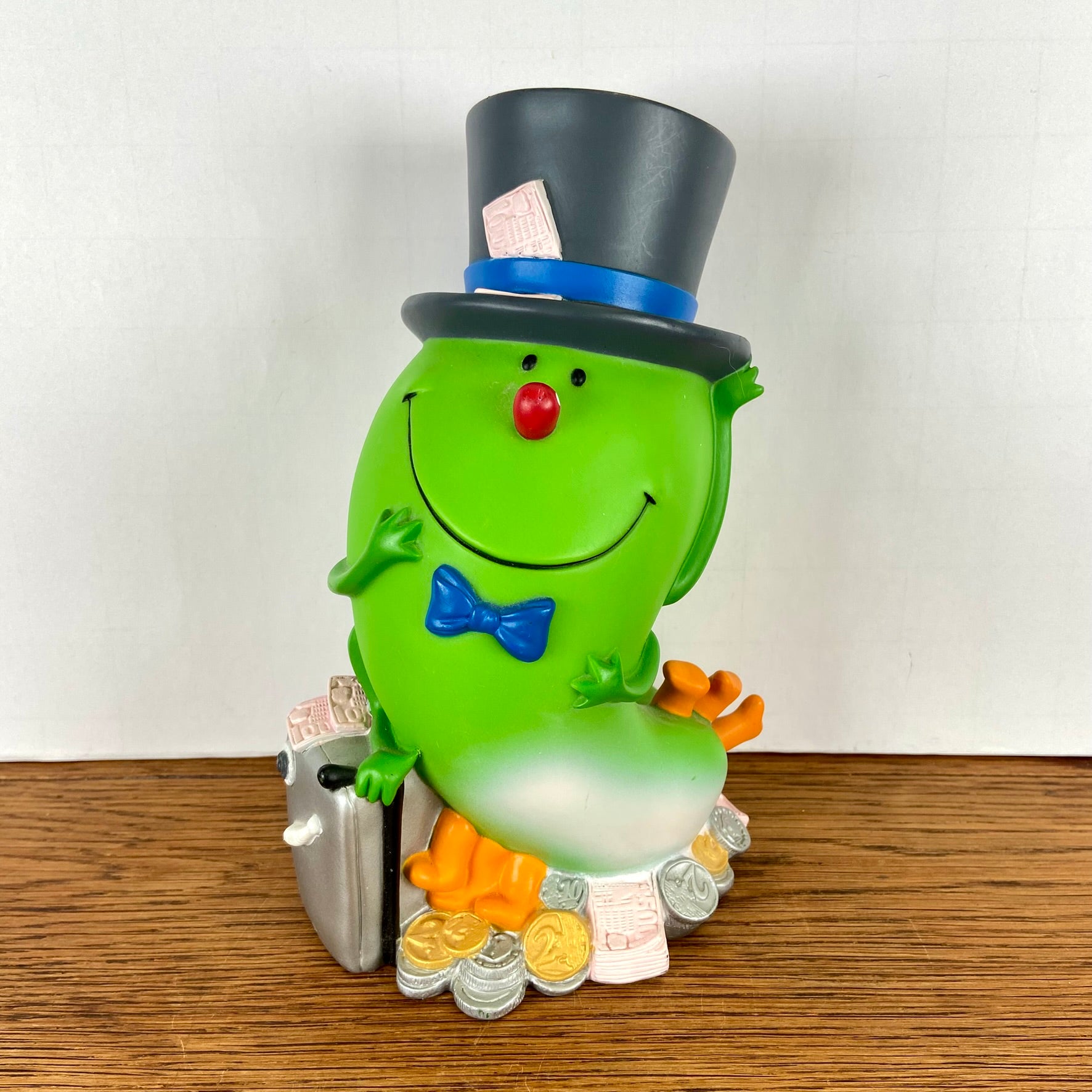 - Deze vrolijke groene rups met hoed is een spaarpot van de Rabobank.