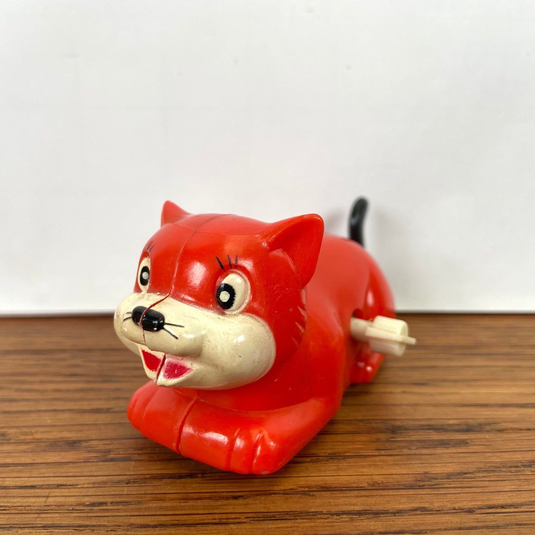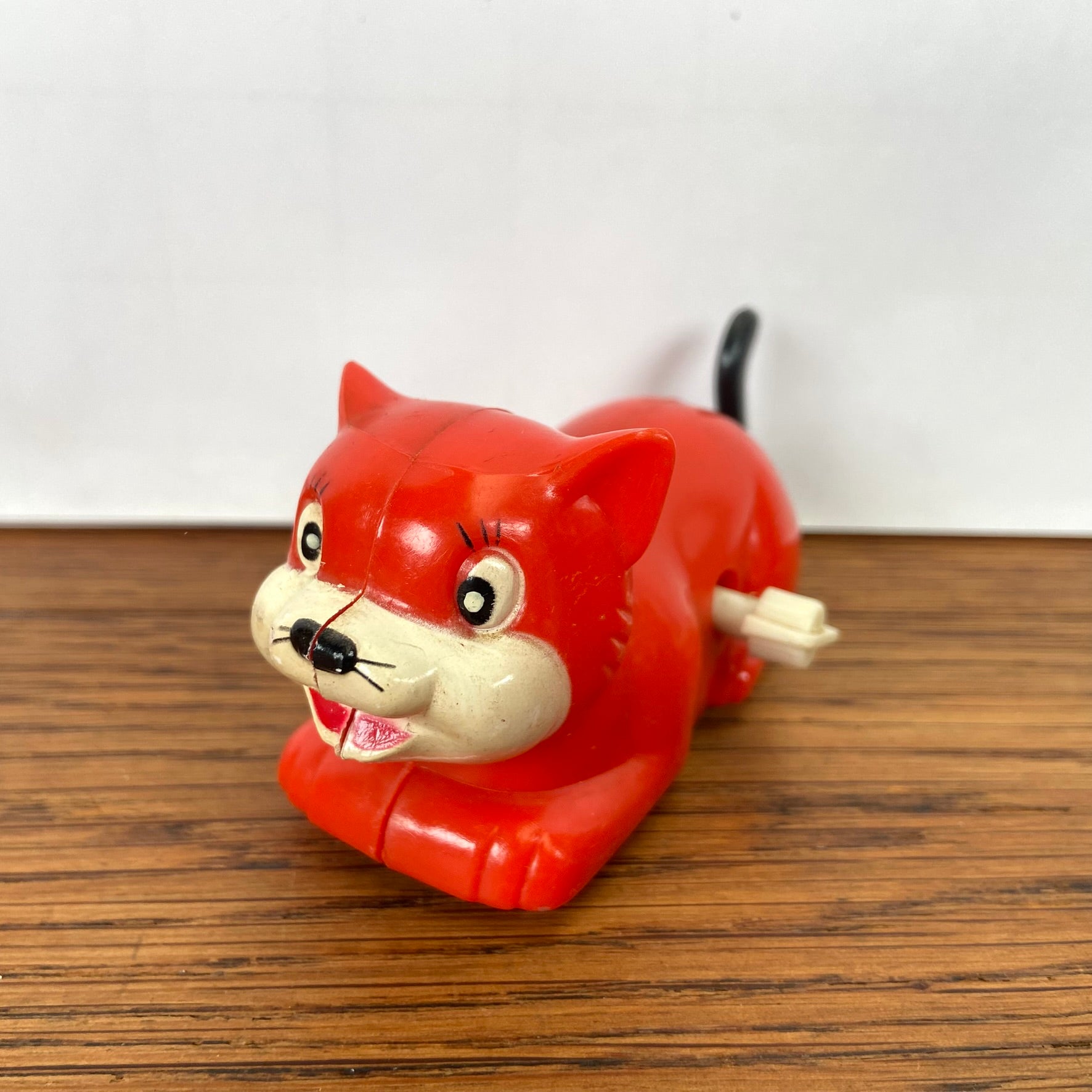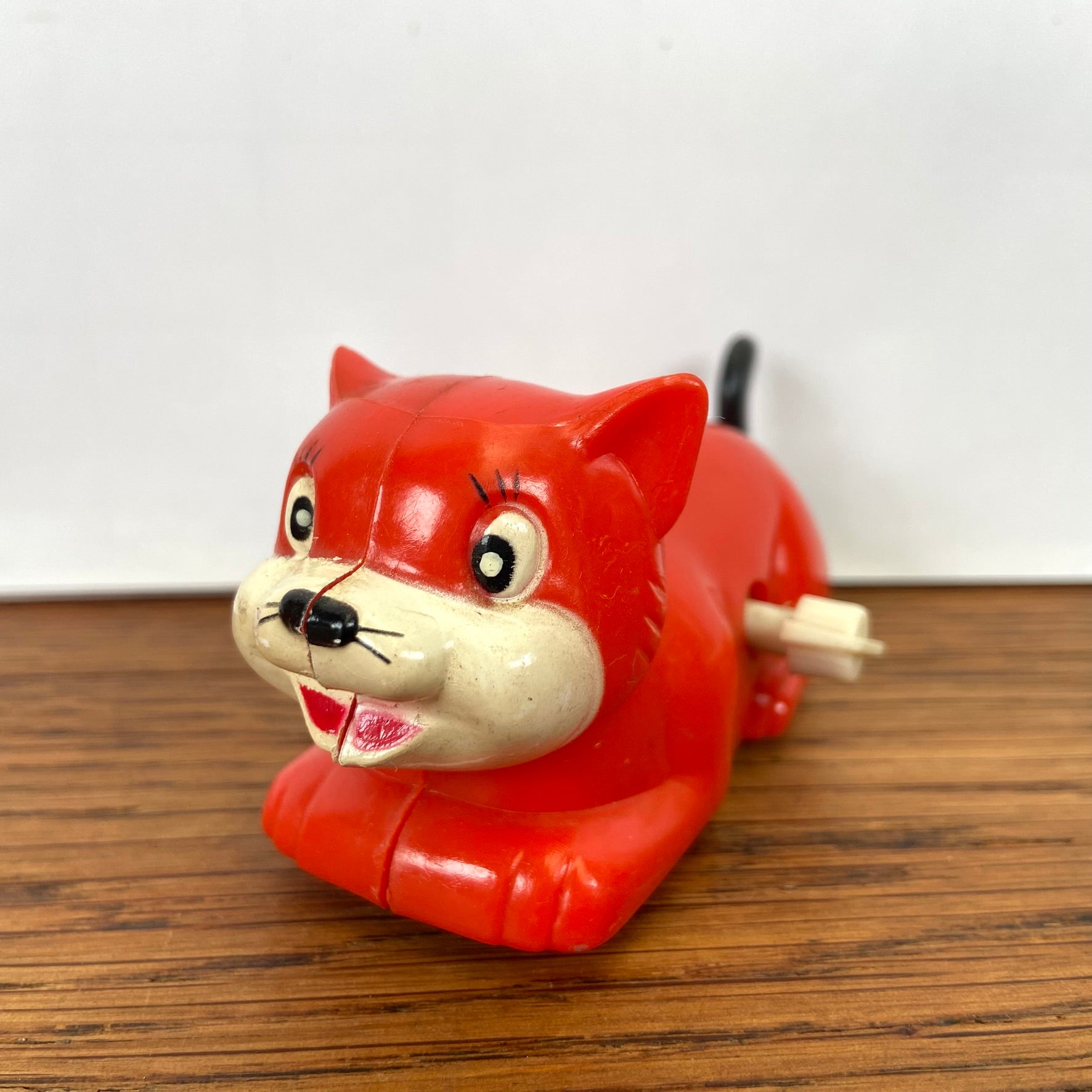 Vintage speelgoed opwind katje