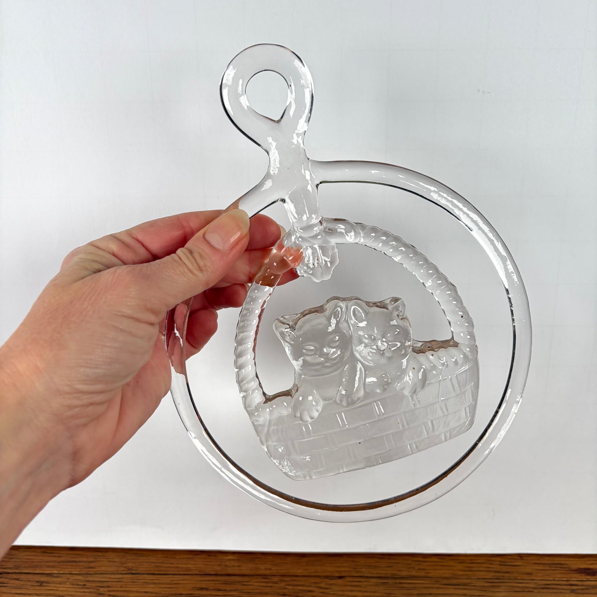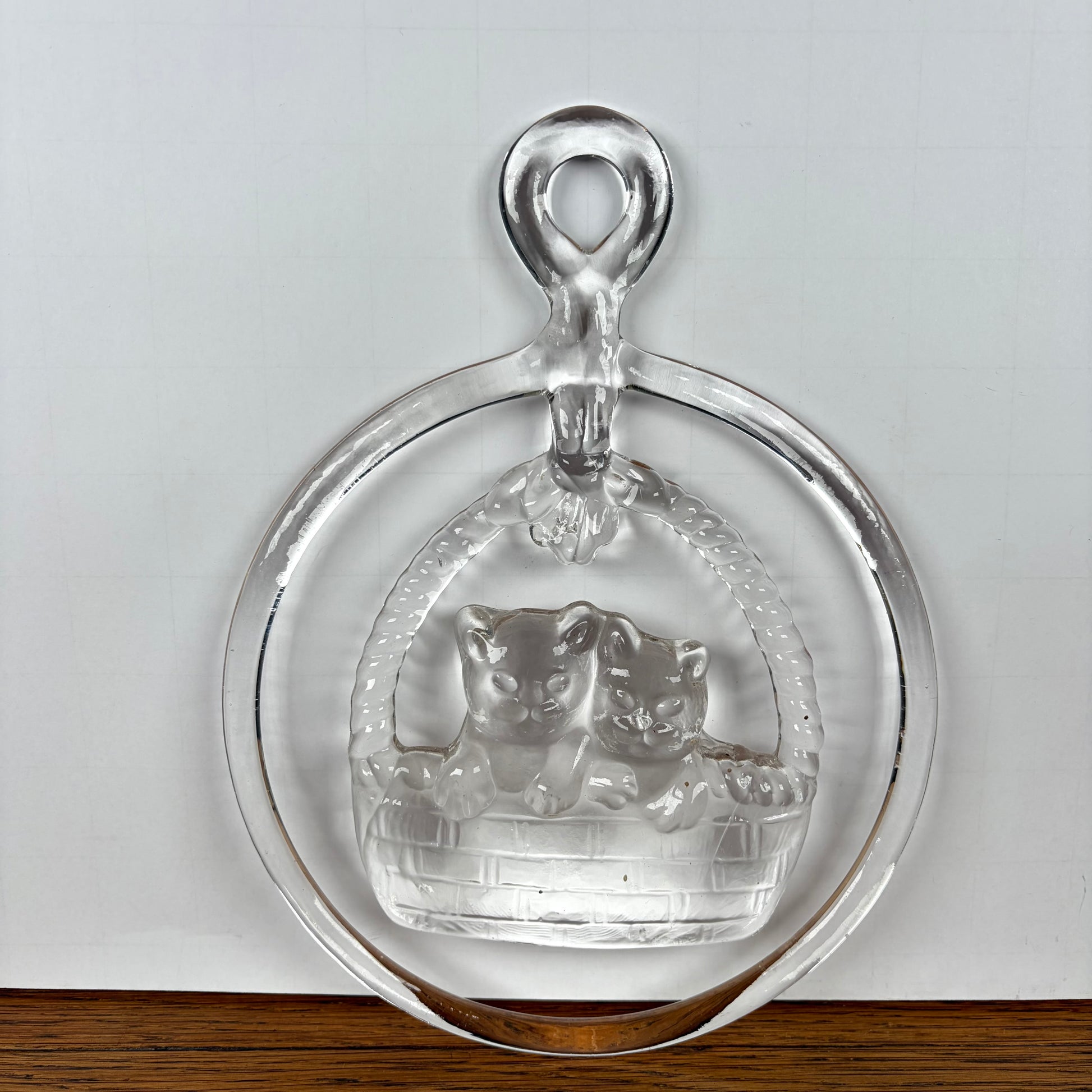 - Prachtige glazen raamhanger - suncatcher met katten in een mandje