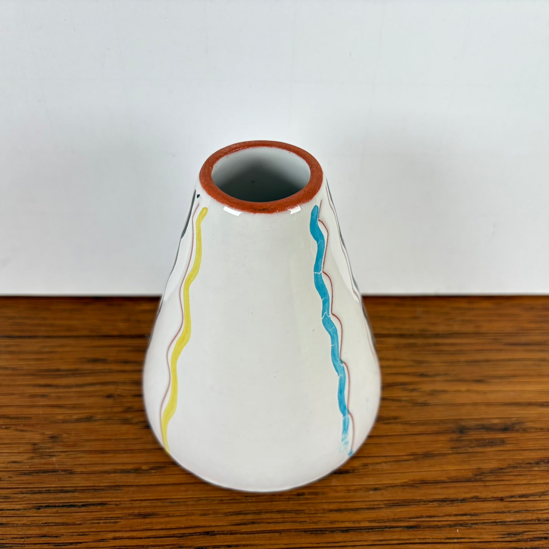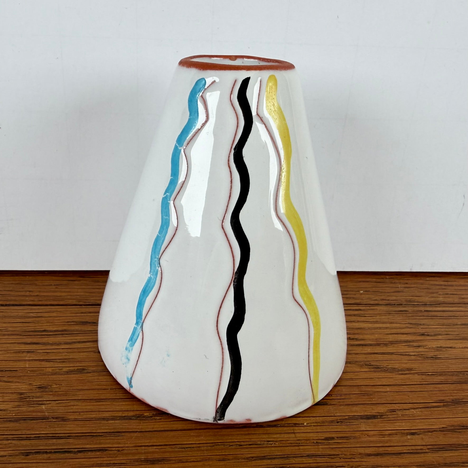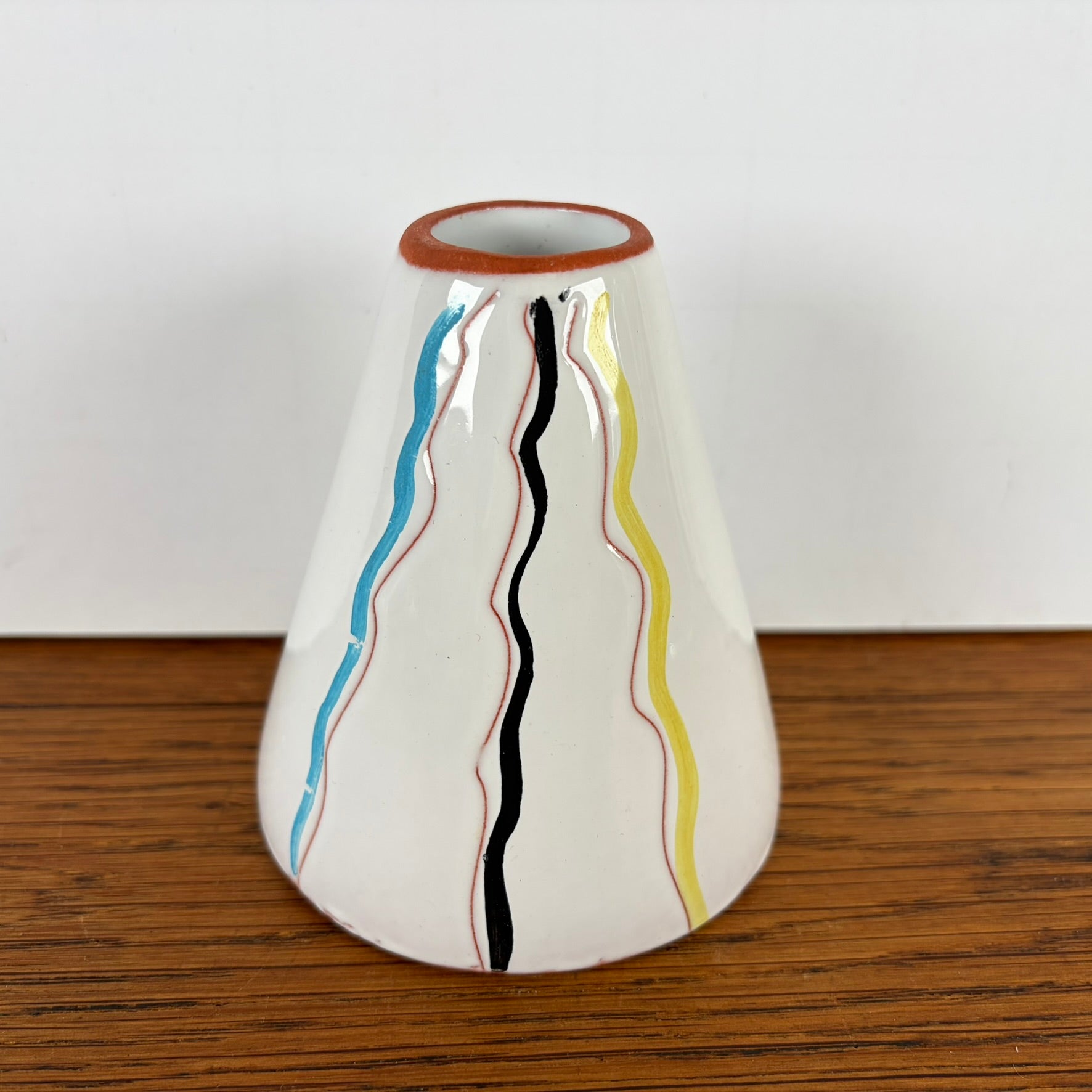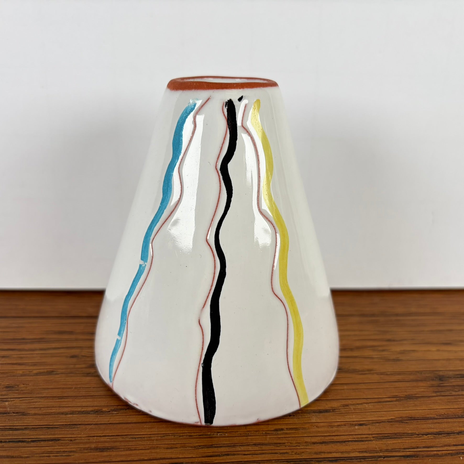 - Schattig klein vintage vaasje met gekleurde wiebel strepen.