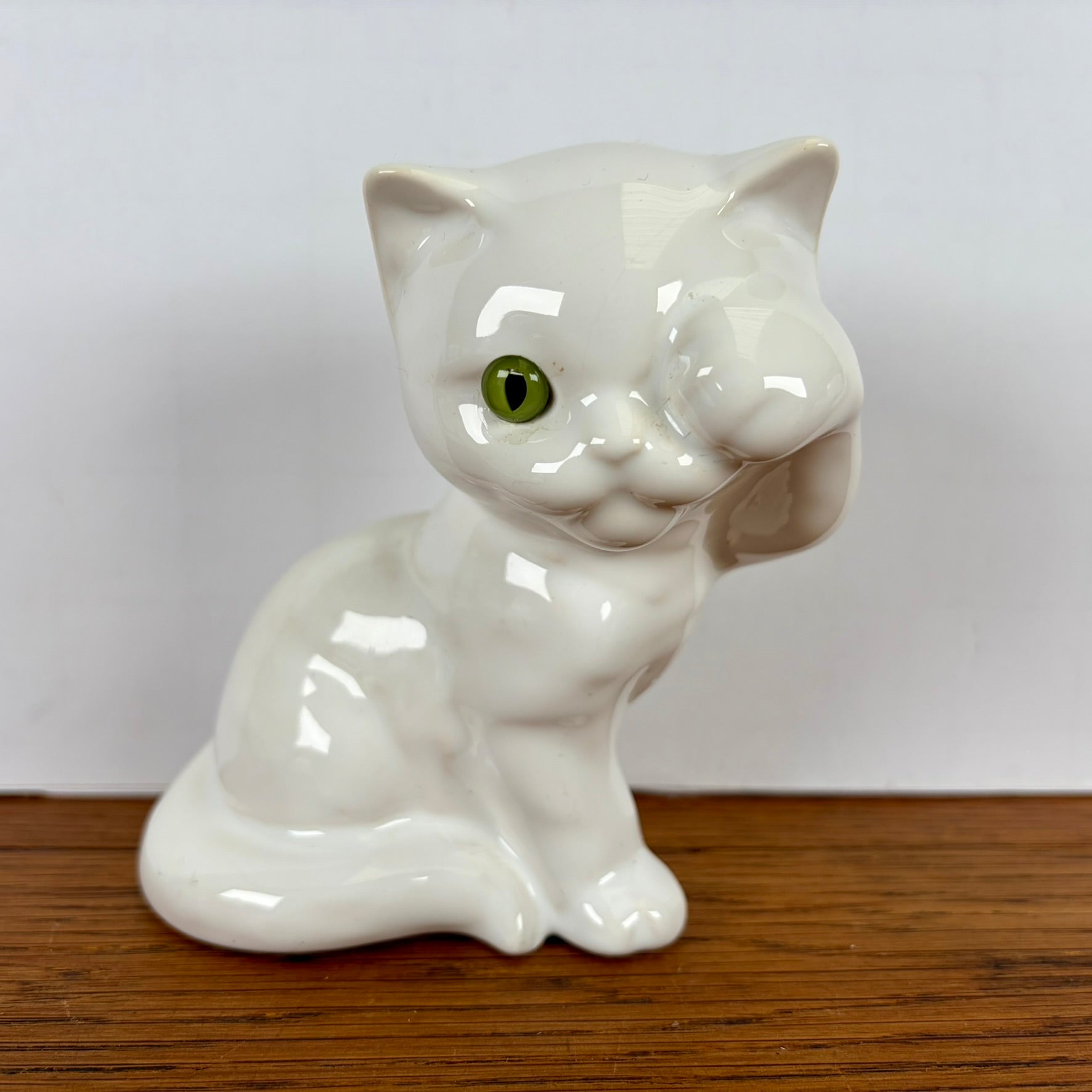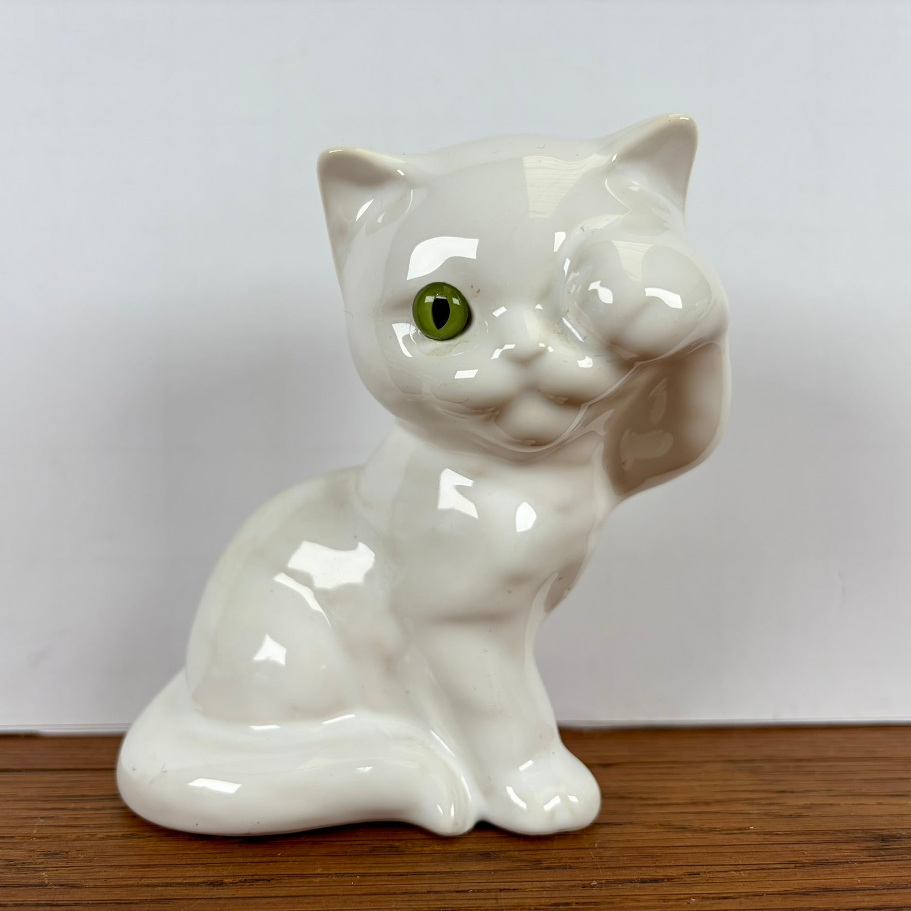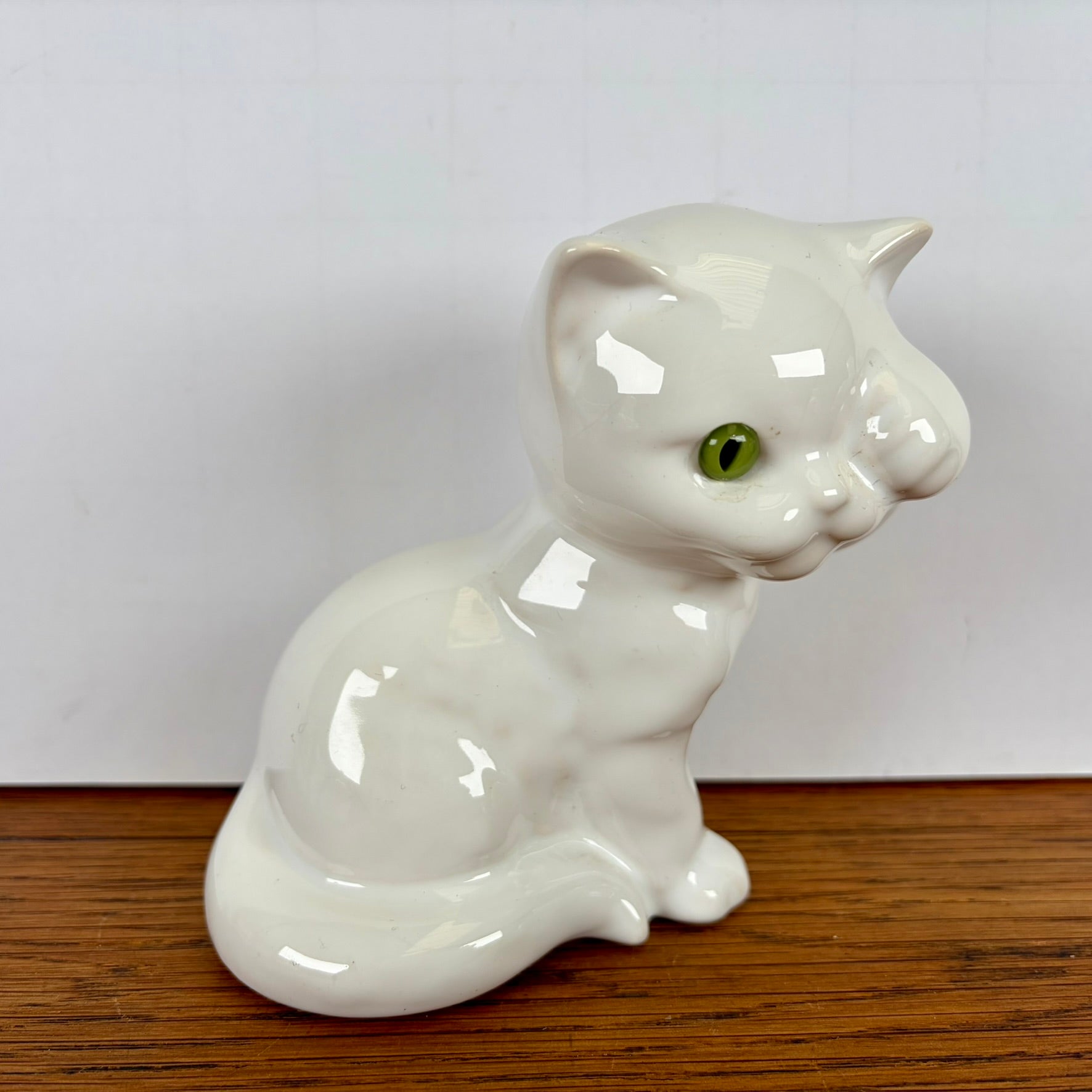 - Klein Delfts wit kattenbeeldje met groene ogen uit de jaren 80.