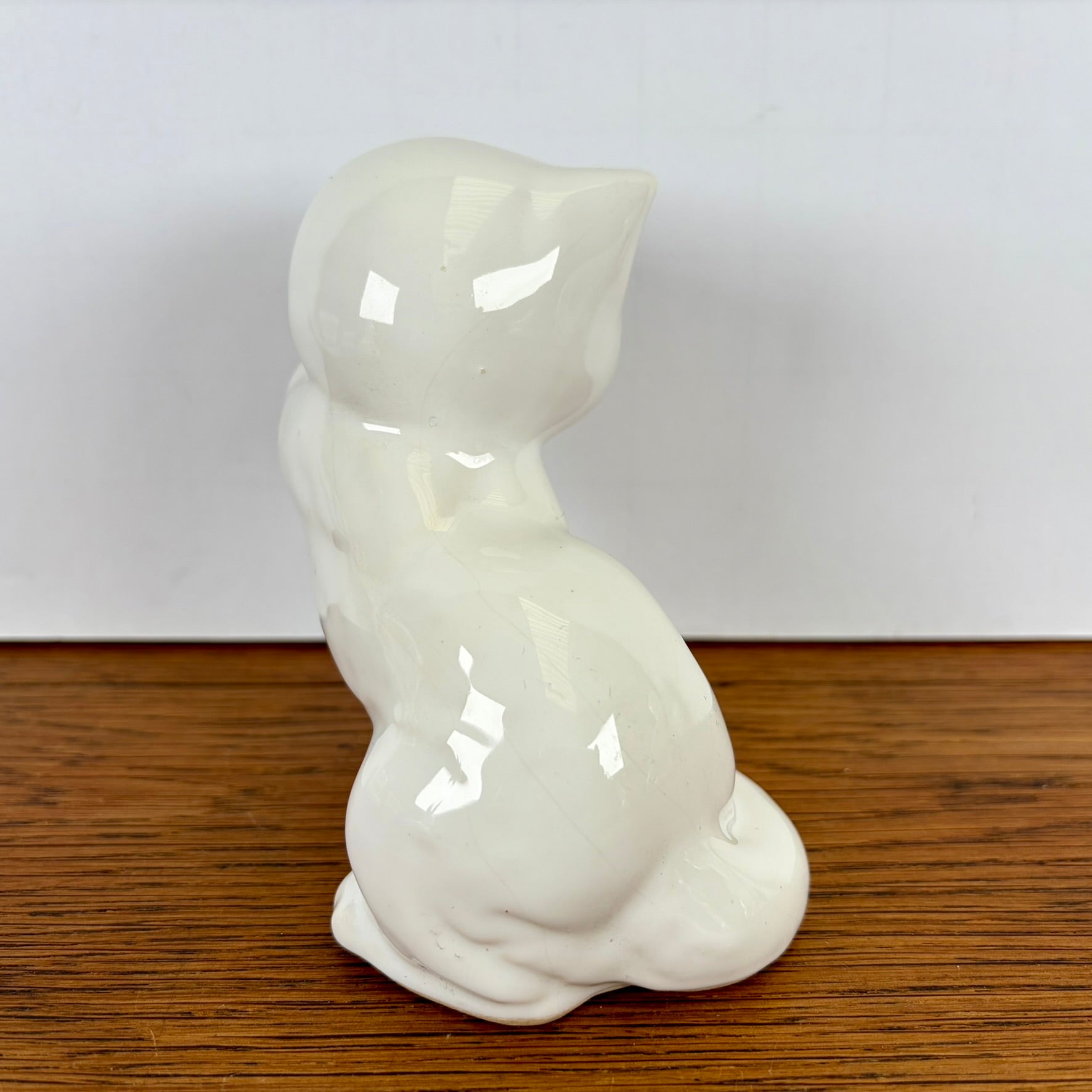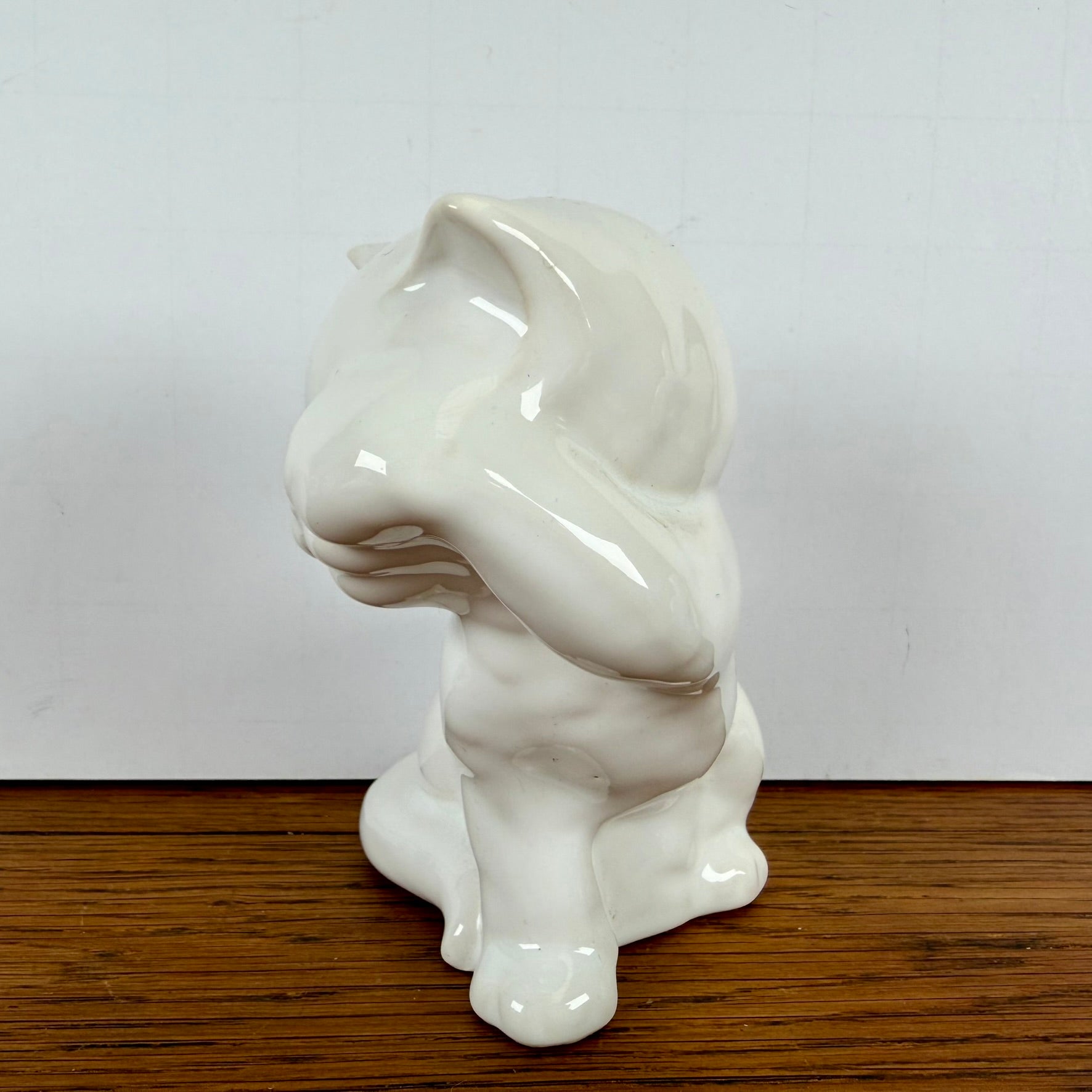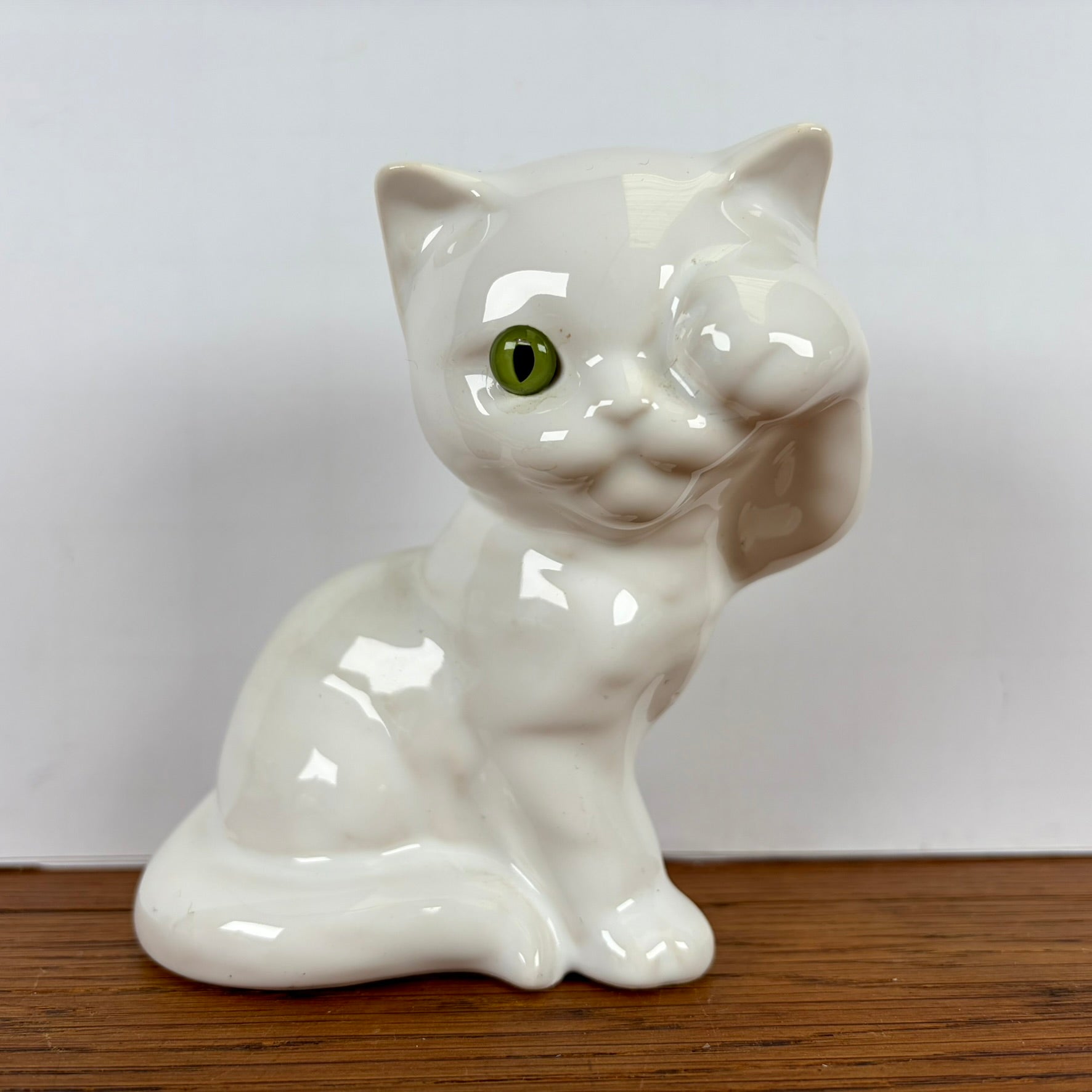 - Klein Delfts wit kattenbeeldje met groene ogen uit de jaren 80.